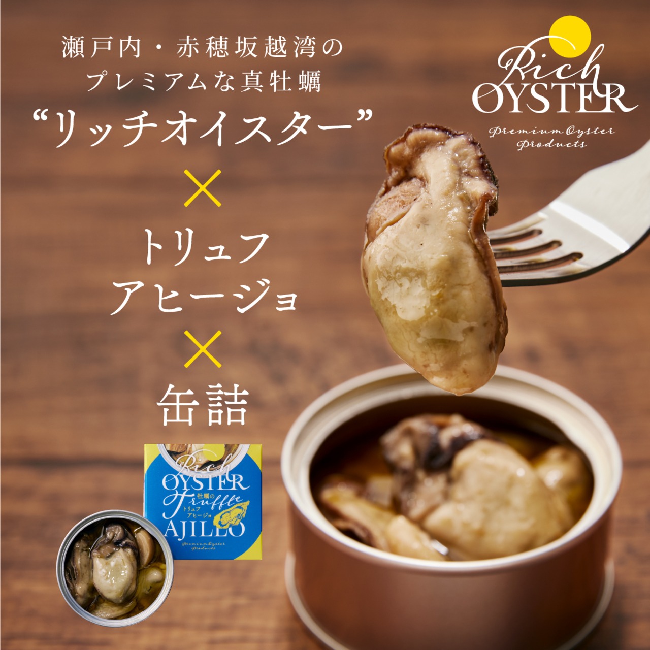 ボリューミーでプリップリ!濃厚なリッチオイスターでトリュフの香りが広がるアヒージョの缶詰!!